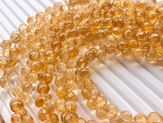 Natural Citrine Micro faceted Onion shape Drops, Citrine gemstone, Citrine teardrops, Citrine Beads, Citrine drops, 6mm to 7mm