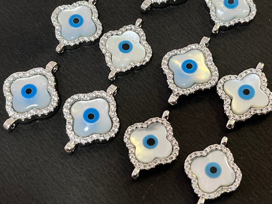 CZ Micro Paved Evil Eye Flower Pendant, Evil Eye Charm Connector