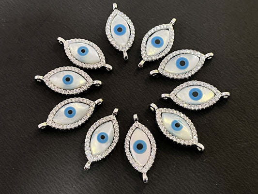 CZ Micro Paved Evil Eye Marquise Pendant, Evil Eye Charm Connector