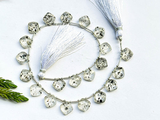 Dot Quartz Cushion Shape Briolette Beads, Natural Dot Quartz Gemstone for Jewelry, 9x9mm, 20 Pieces