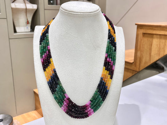 Natural Multi Sapphire Necklace, Ruby Sapphire Emerald Necklace, Multi Precious gemstone Healing Necklace, 5 Layering Necklace, 20 Inch