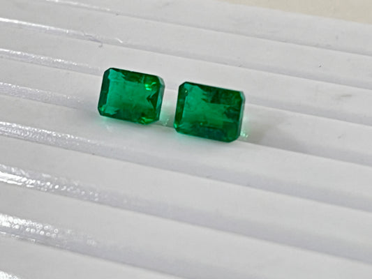 1.35 Carats Natural Zambian Emerald Vived Green Color Octagon Cut Pair