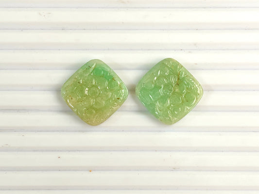 Natural Emerald Hand Carved Cushion Shape loose gemstone pair
