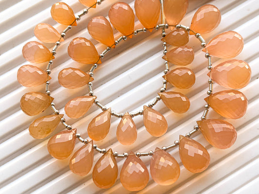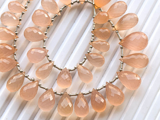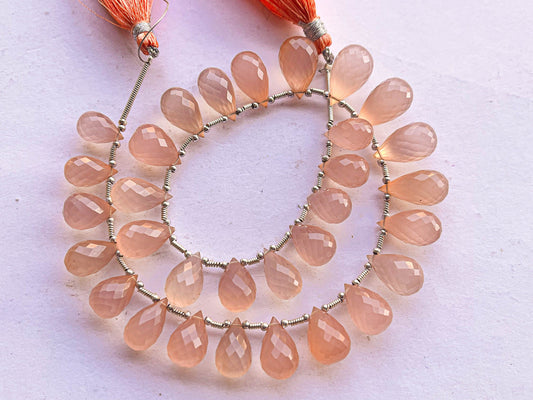 Peach Onyx Faceted Drops, Peach Onyx Teardrops