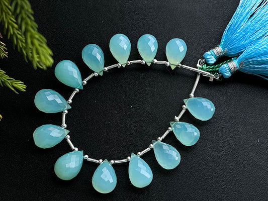 Aqua Blue Onyx Faceted Drops, 14 Pieces | 8x12mm to 9x14mm