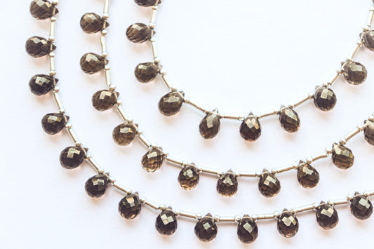 Smoky Quartz Faceted Drops, 5x7mm, 18 Pieces, Side drill, 6 inch Strand, Natural Gemstone Bead for jewelry making