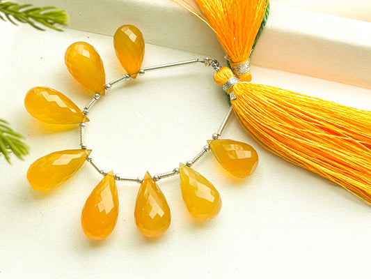 Yellow Onyx Faceted Drops, 14 Pieces | 8x14mm to 9x16mm
