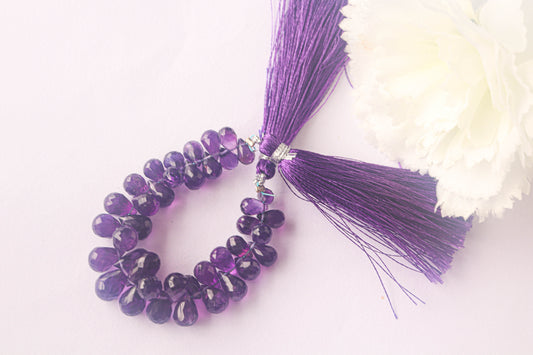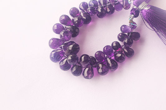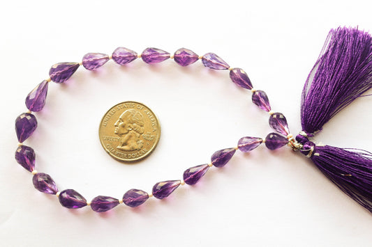 Amethyst Faceted Drops | 5x7mm to 8x12mm | 10 inch | 22 Pieces | Center Drill | Natural gemstone beads | Beadsforyourjewellery