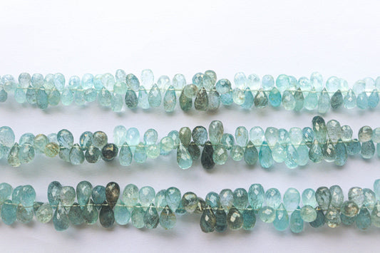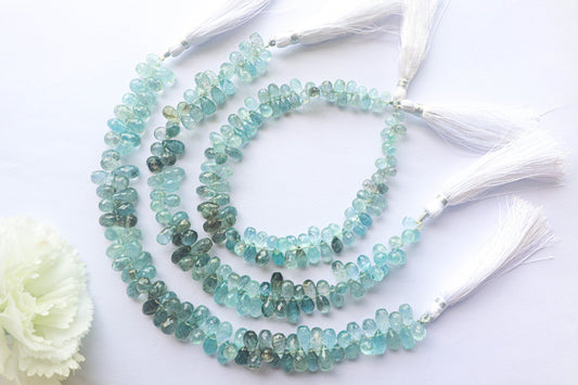 Moss Aquamarine Faceted Drops | 6x10mm to 7x12mm | 79 Pieces Full Strand | 9 Inch | Natural Moss Aquamarine | Beadsforyourjewellery
