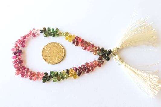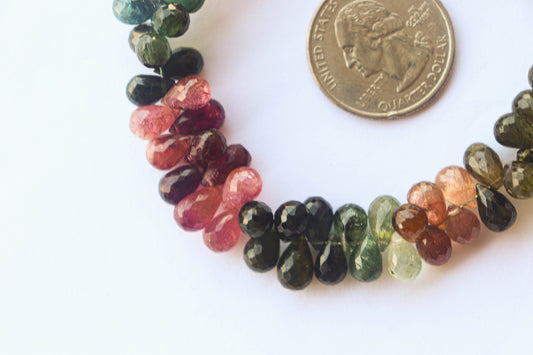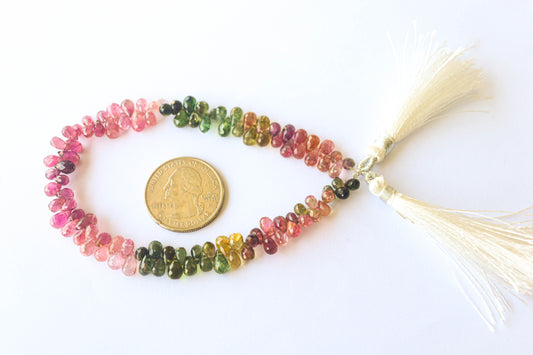 Multi Tourmaline Faceted Drops | 5x7mm | 9 inch | 88 Pieces | Natural Tourmaline Gemstone | Beadsforyourjewellery | BFYJ895