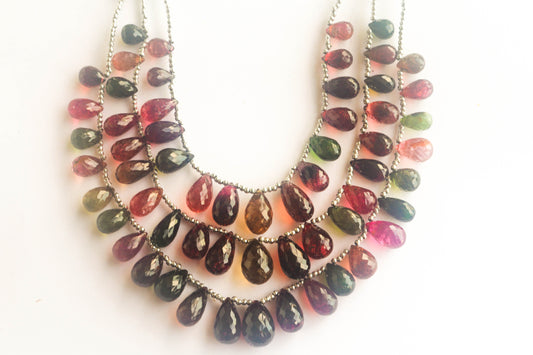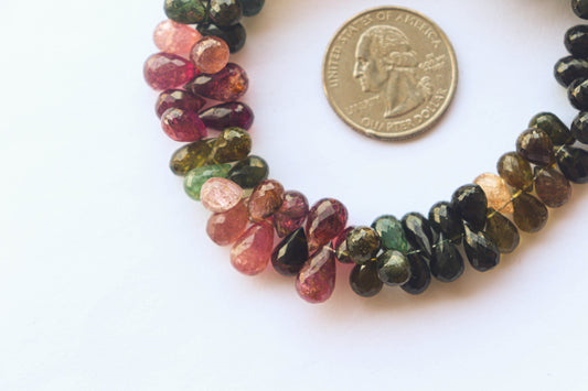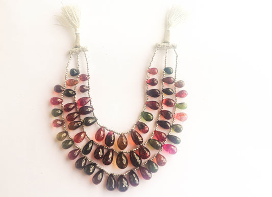 Multi Tourmaline Faceted Drops | 7x10mm | 9 inch | 82 Pieces | Natural Tourmaline Gemstone | Beadsforyourjewellery | BFYJ898