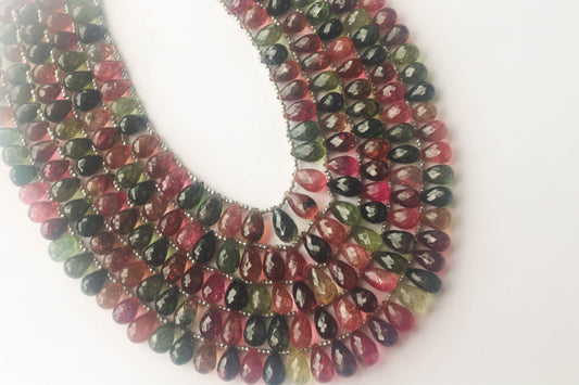Multi Tourmaline Faceted Drops | 6x8mm | 9 inch | 85 Pieces | Natural Tourmaline Gemstone | Beadsforyourjewellery | BFYJ897