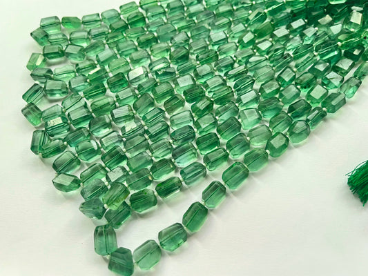 Natural Green Fluorite Uneven Faceted Tumble Shape Beads