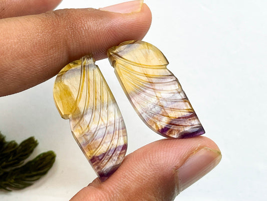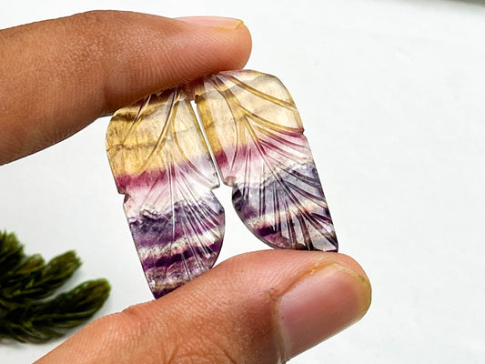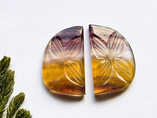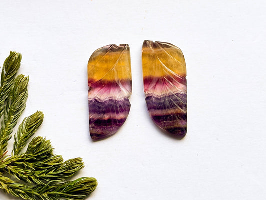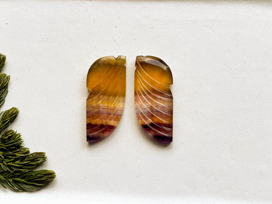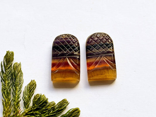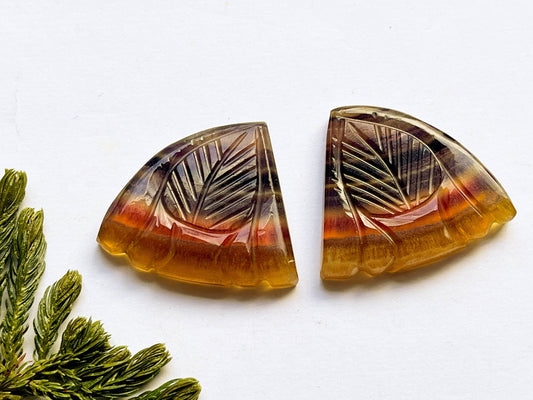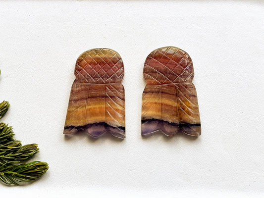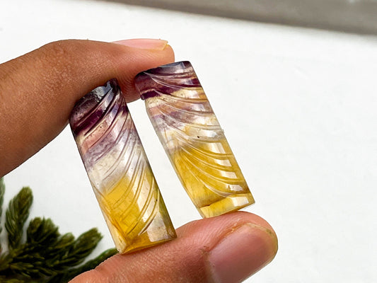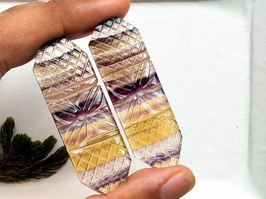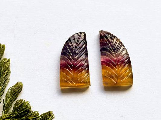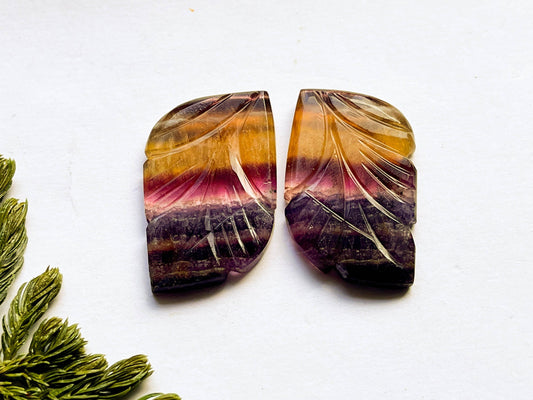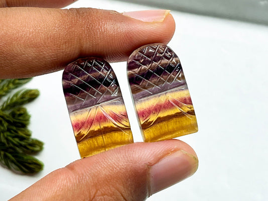 Multi Fluorite Gemstone,Fancy Shape Carving Cabochon Matching Pair
