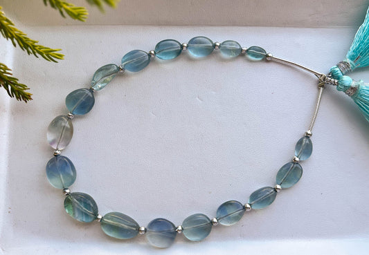 Natural Greenish Blue Fluorite Gemstone Oval Shape Beads