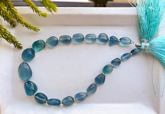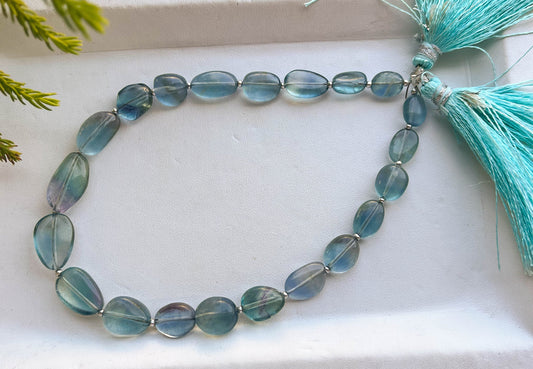Teal Blue Fluorite Smooth Tumble Beads, Natural Fluorite Gemstone Beads, Fluorite Beads, 9 inch, 21 Pieces, Beadsforyourjewellery BFYJ74-3