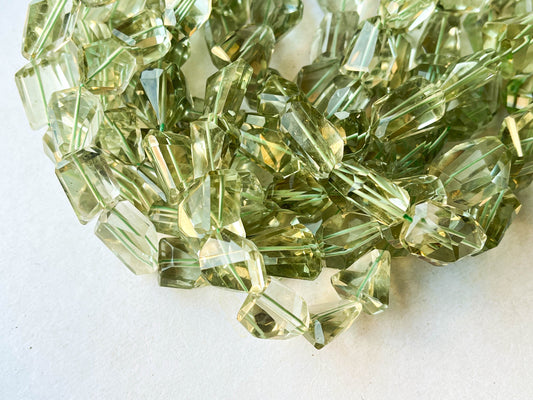 Natural Green Amethyst Faceted Tumble Shape Beads