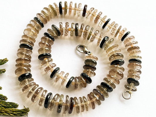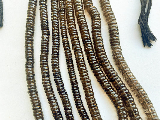 Smoky Quartz Heishi Tyre Shape Faceted Beads