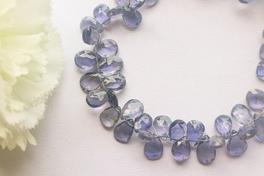 Iolite, with its deep violet-blue hues, is known for enhancing intuition, clarity, and self-discovery. Its vibrant color makes it a captivating choice for jewelry.
