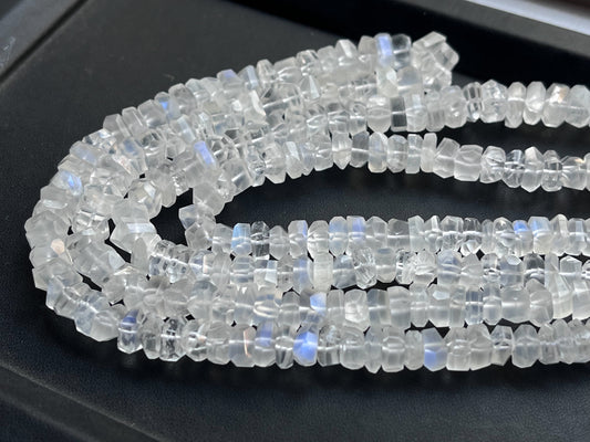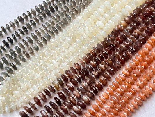 Natural Rainbow Moonstone Faceted Rondelle Shape Beads