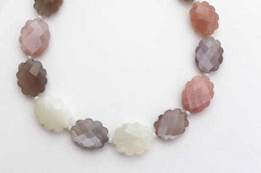 Natural Rainbow Moonstone Uneven Shape Tumble Faceted Beads