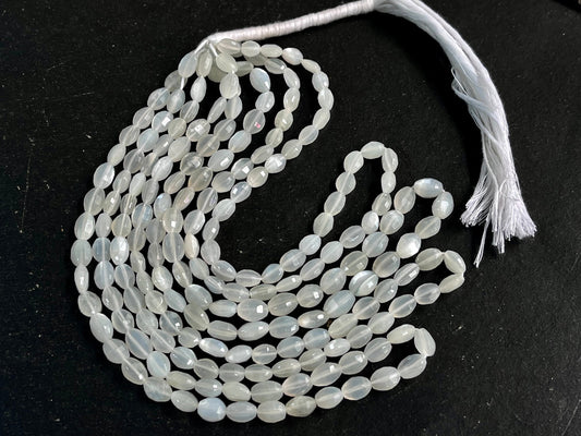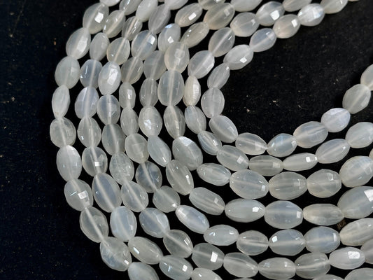 Natural Grey Moonstone Faceted Cylindrical Gemstone Beads