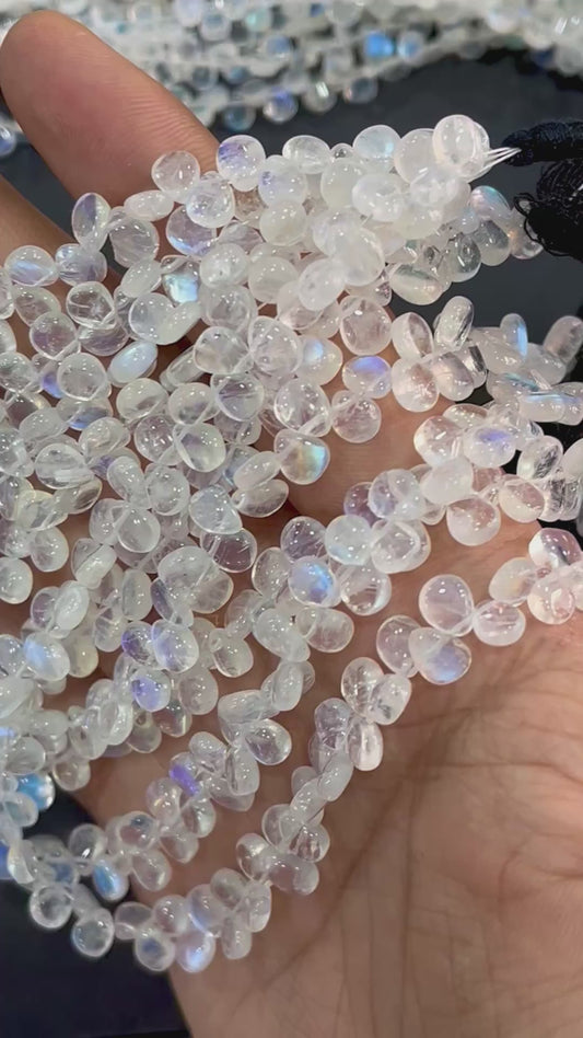 Rainbow moonstone smooth pear briolette beads | Stunning flash ⚡️