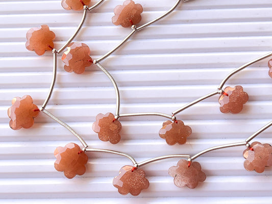 Natural Peach Moonstone Tree Shape Briolette Beads