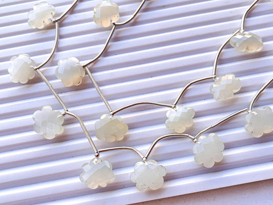 Natural Grey moonstone Gemstone Carved Rondelle Beads