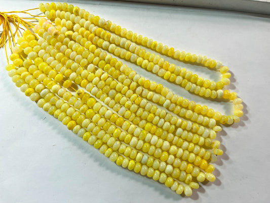 Lemon Yellow Opal Smooth Rondelle Shape Beads