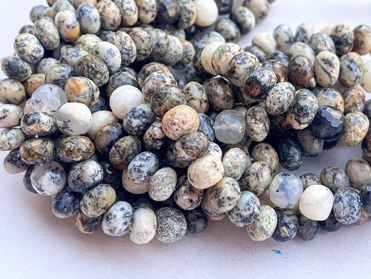 Natural Dendrite Opal Rondelle Shape faceted beads