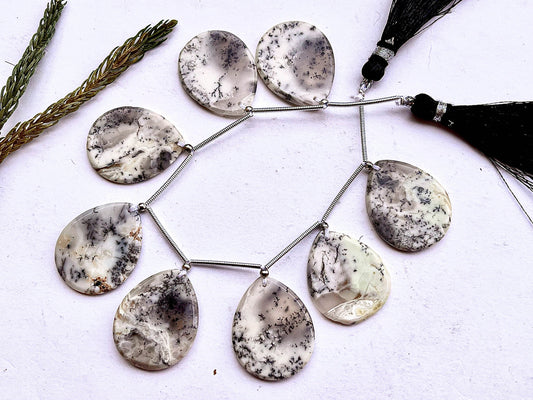 Dendritic Opal Flat Pear Shape Beads