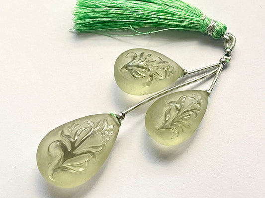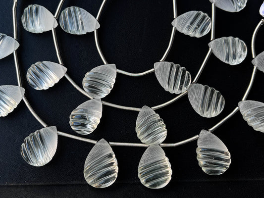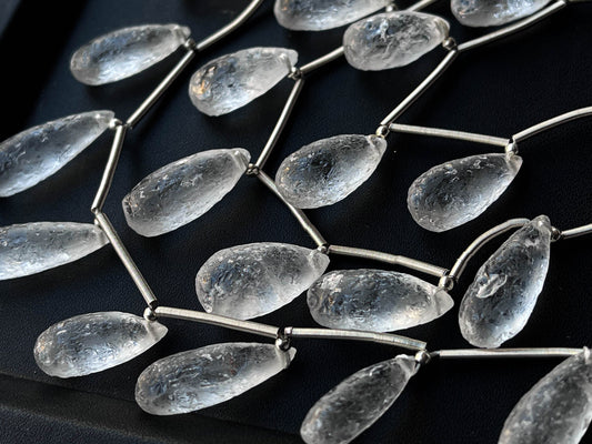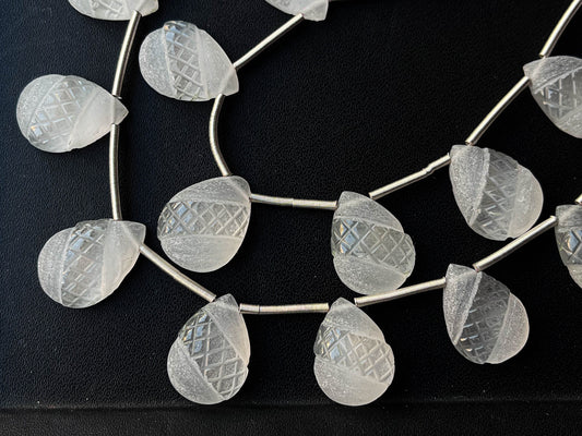 Natural Crystal Frosted Carved pear Shape Beads, 8 Pieces