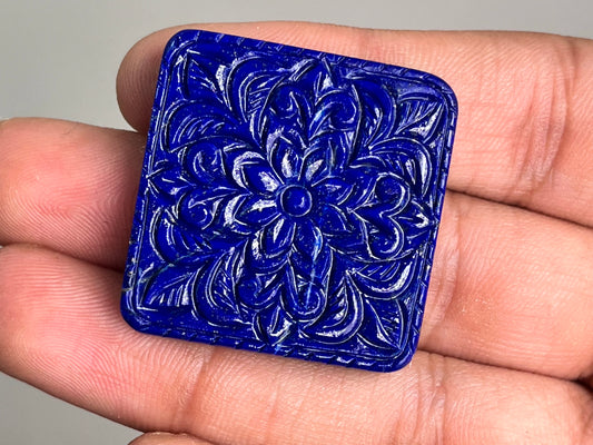 Natural Lapis Lazuli Hand-Carved Square cushion loose piece,