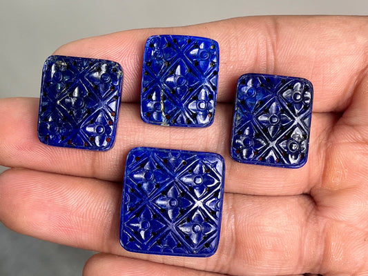 Natural Lapis Lazuli Hand-Carved window carving 4-Pieces set