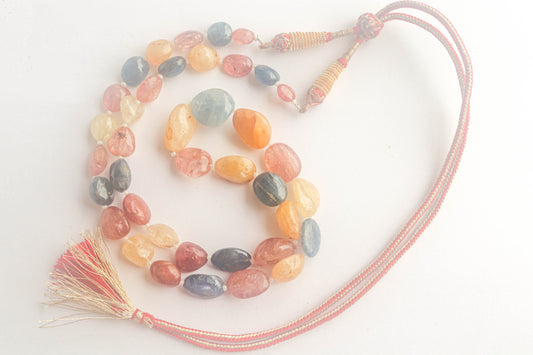 Multi Sapphire, available in a range of vibrant colors, is known for promoting wisdom, balance, and creativity. Its colorful variety makes it a unique and eye-catching choice for jewelry.