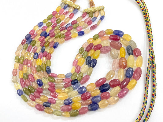 Natural Multi Sapphire Necklace, Ruby Sapphire Emerald Necklace, Multi Precious gemstone Healing Necklace, 5 Layering Necklace, 20 Inch