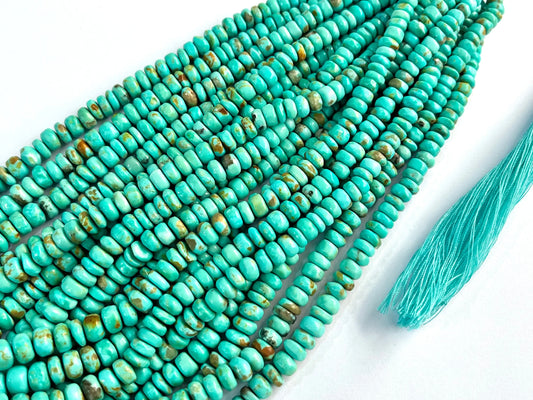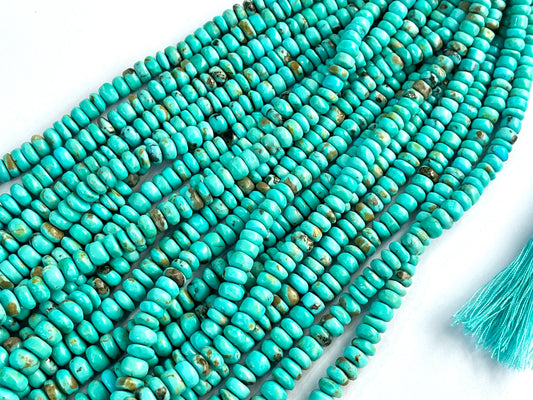 Natural Neon Blue Apatite Gemstone Smooth Rondelle Beads Strand