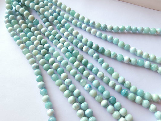 Natural Larimar Gemstone Smooth Round / Spherical Shape Beads
