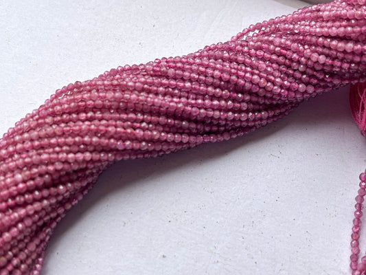 2mm AAA Pink Tourmaline micro faceted round spherical beads