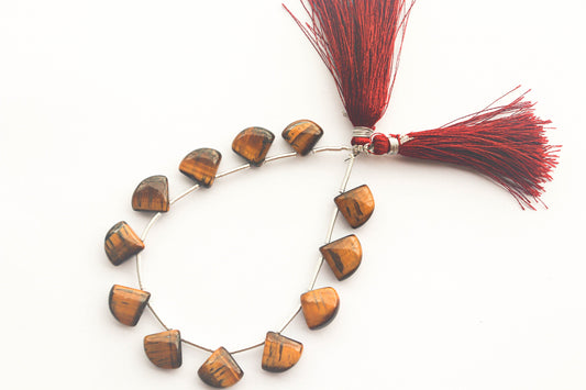 Tiger Eye Briolette Smooth Fan Shape | Side Drill | 8 inch Strand | 11x13mm | 12 Pieces | Natural Gemstone Beads for jewelry making