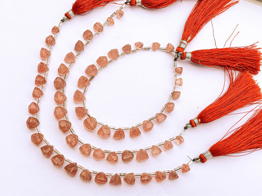 Pink Strawberry Quartz 3D Trillion Shape Beads