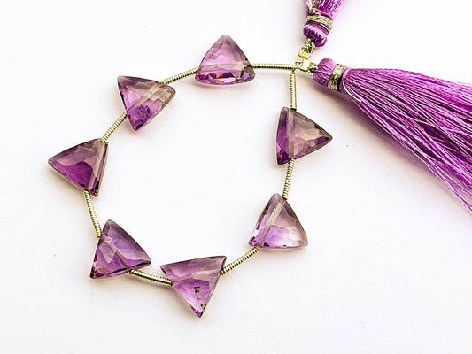 Pink Amethyst Trillion Shape Concave Cut, 10x10mm, 8 Pieces, Side Drill, Natural Gemstone for Jewelry, Beadsforyourjewellery