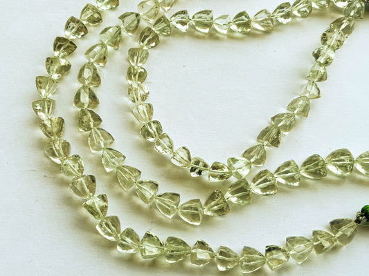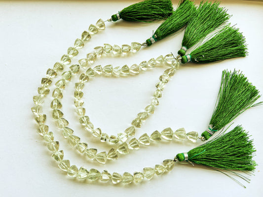 Green Amethyst 3D Pyramid / Trillion Shape Briolette Beads