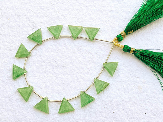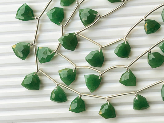 Green Jade Trillion shape faceted briolette beads, 11mm to 15mm