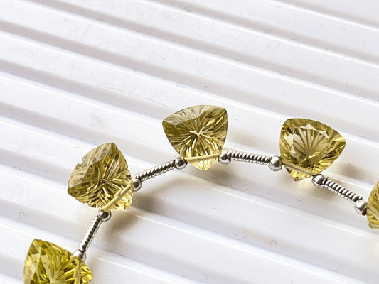 Natural Green Amethyst Trillion shape faceted briolette beads