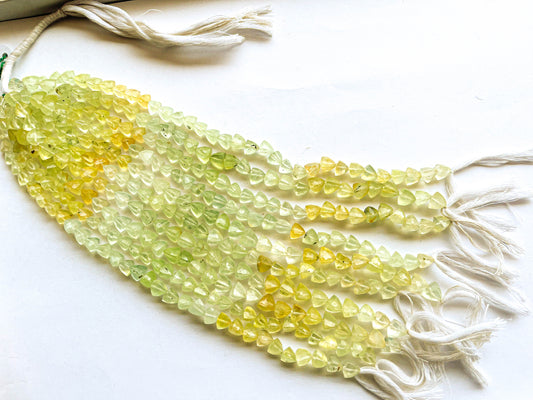 Natural Lemon green gold Carved Concave Cut Trillion Shape beads