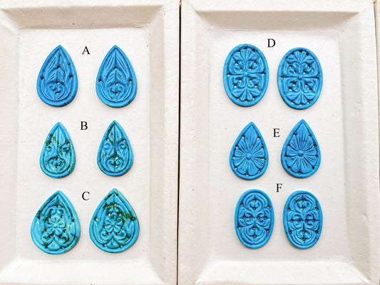 Turquoise Window Carving Pairs, Turquoise Gemstone, Turquoise Carving for Jewelry making