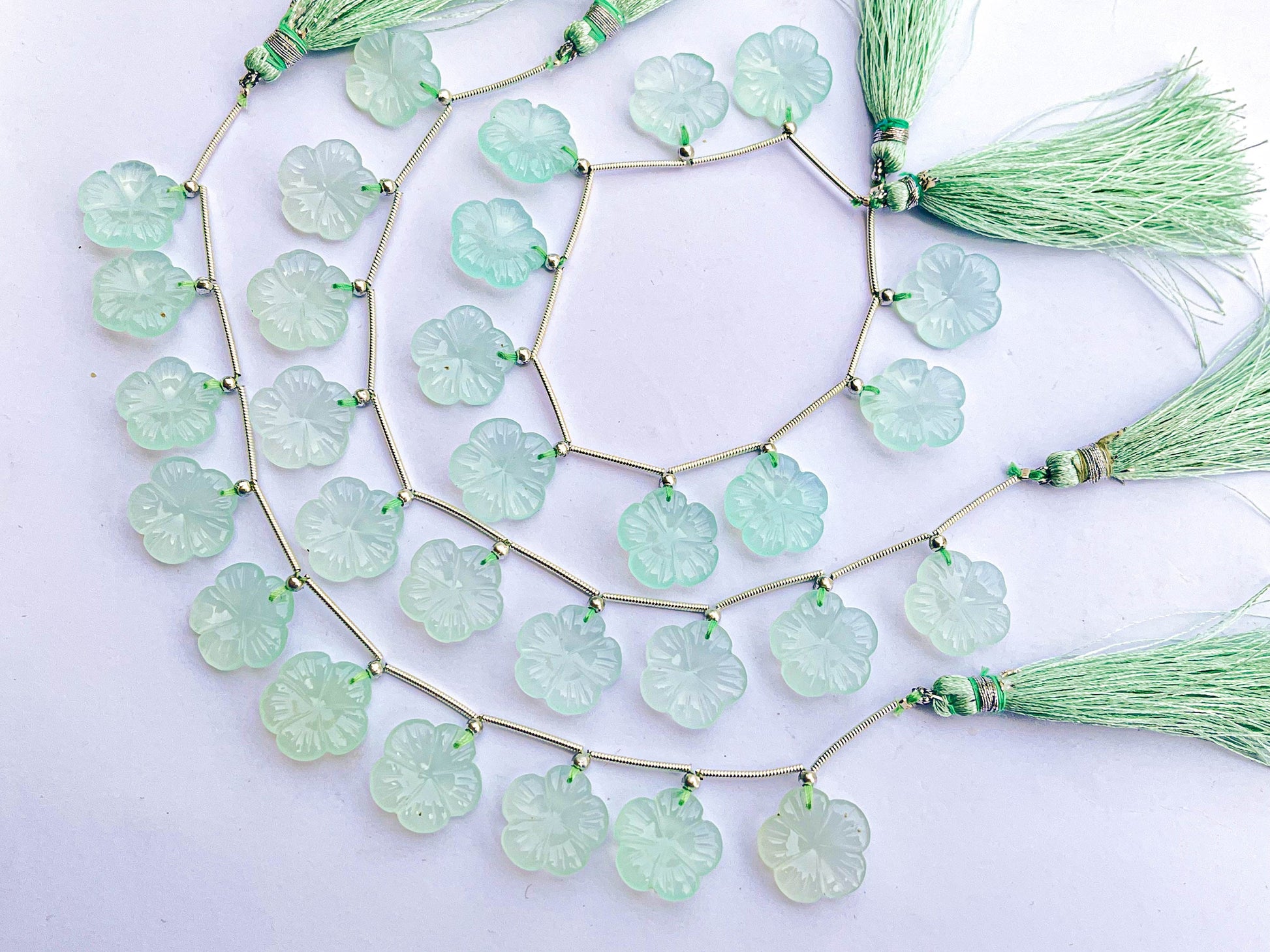 Aqua Blue Chalcedony Flower Carving Beads These beautiful beads add a touch of elegance to any jewelry piece. Made from aqua blue color chalcedony, they offer a unique and high quality material that is renowned for its calming and soothing properties.