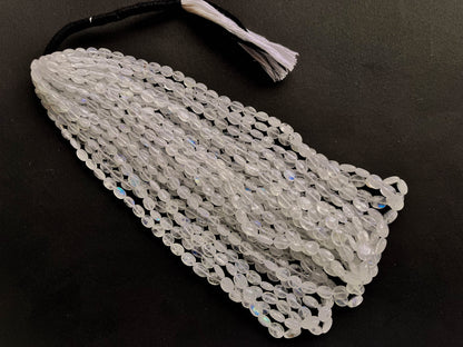 16 Inch Rainbow Moonstone Smooth Oval Shape Beads, Center Drill, 4x6mm to 7x10mm, Natural Rainbow Moonstone